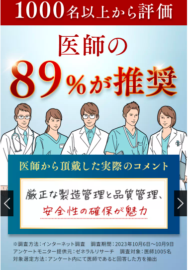 | 医師からの評価 | 89%の医師が奨励 |