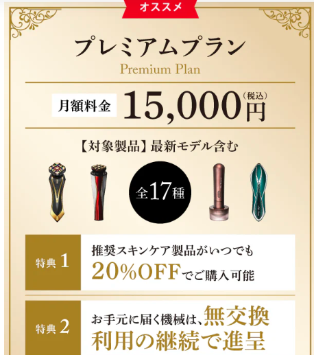 - 4 憧れの美顔器総額約300万円分を定額で使い放題