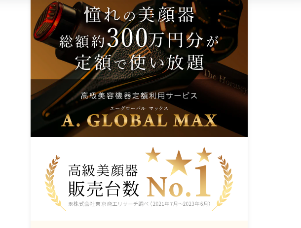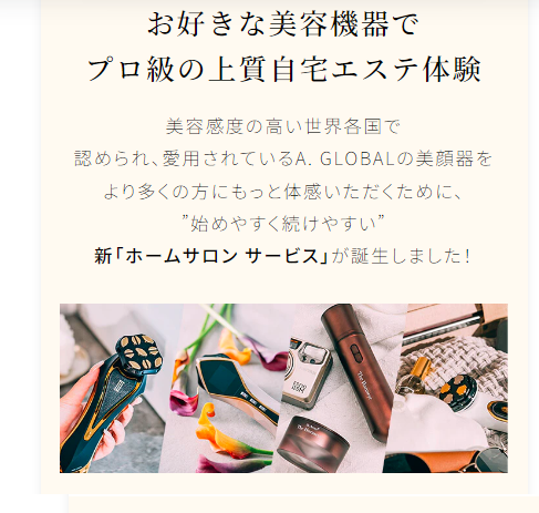 エーグローバルマックスは、定額制(月額制)で高性能な美顔器を使えるサブスクリプションサービス。