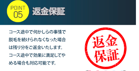 何かしらの事情で脱毛を続けられなかった場合残りの回数分の金額を返金対応コース途中で効果に満足してやめる場合でも
