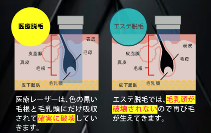 | エステ脱毛 | エステ脱毛では毛乳頭が破壊されないので 再び毛が生えてきます |