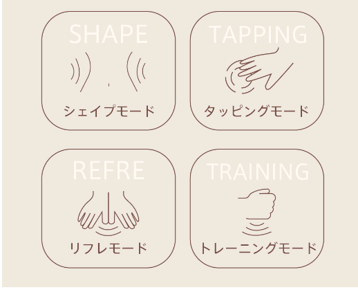 | モードの種類は? | シェイプアップモード タッピングモード リフレモード トレーニングモード |