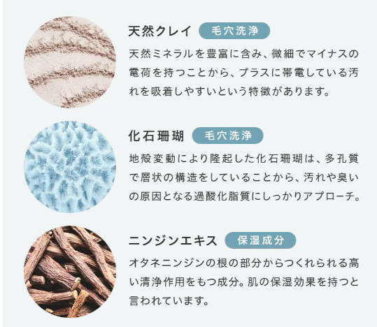 | 天然クレイ | 毛穴洗浄 天然ミネラルを豊富に含み |