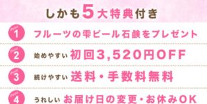 | 特典 | フルーツの雫ピール石鹸プレゼント |