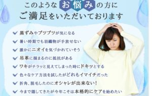 お試しください、[/char] もうワキの黒ずみで悩まない!