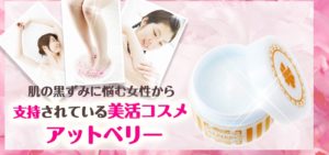 | メリット・デメリット | アットベリーのデメリット ニオイを気にする人もいる すぐに効果は期待できない 薬局などで買えないアットベリーのメリット ★使い方がシンプル ★全身に使えてコスパがいい ★黒ずみなどのデリケートな悩みに使える |