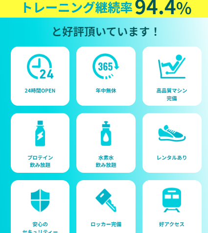 正しい方法をしっかり学べるので便利ですね24時間好きな時に行けるのでサボらずに続けられています