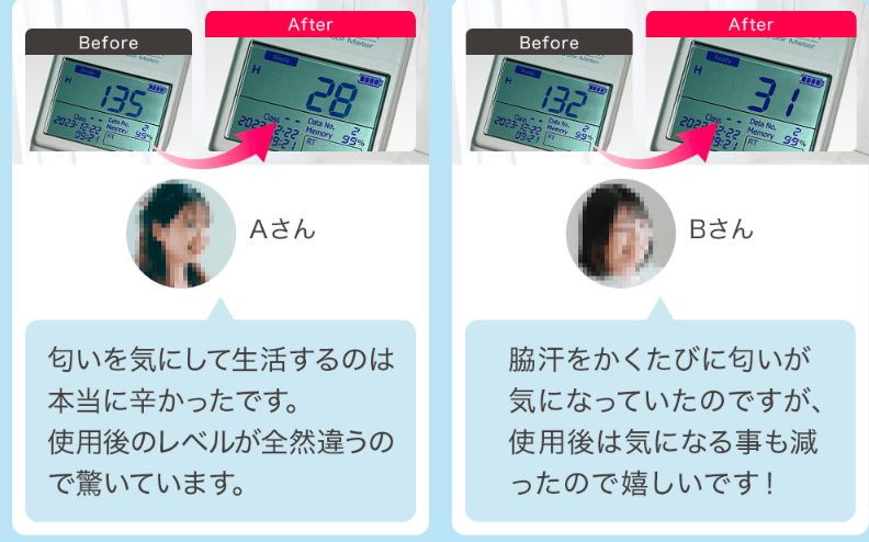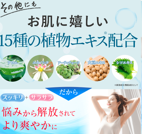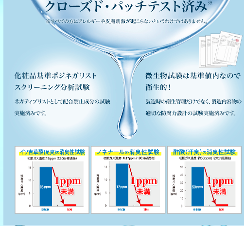 • ワキの汗やにおい以外の部位には別の商品を使う必要があります。