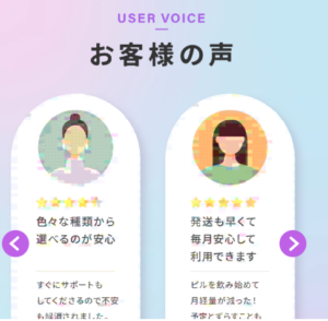 発送も早くて毎月安心して利用できてます ピルを飲み始めて月経量が減った 予定とずらすことも簡単に 引用公式