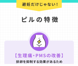 | 生理痛・PMSの改善 | 排卵を抑制する効果があるため 生理痛・PMSの改善が期待 |
