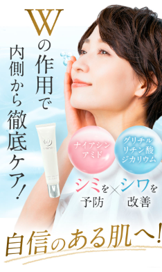 美白有効成分「ナイアシンアミド」と、肌荒れ予防に働く「グリチルリチン酸ジカリウム」をW配合し、シミ予防とシワ改善にアプローチする設計となっています。