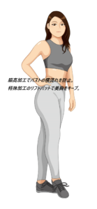 特殊生地の脇高加工で、横流れ防止