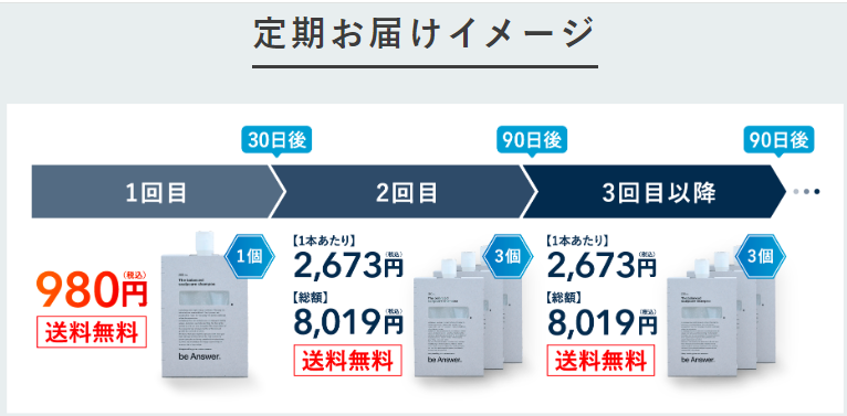 ビーアンサースカルプケアシャンプーの定期のお届けイメージ