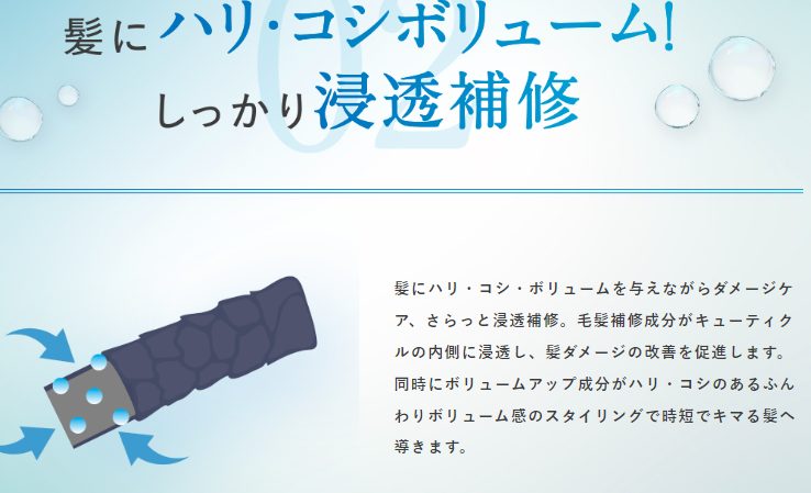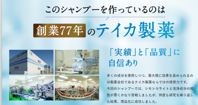 | メリット | 新毛髪成分のシモンコライト配合 髪にハリ、コシ、ボリュームを! 落ち着きのある香りを実現 製薬会社が製造 |