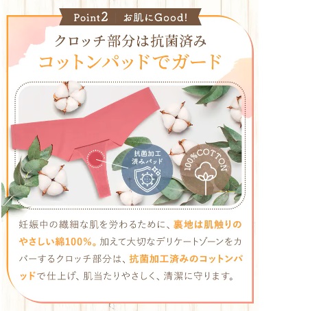 締め付けすぎず、動きやすく、清潔さを保ちやすい素材選びが特徴で、妊婦さんの心地よい毎日をサポートしてくれます。