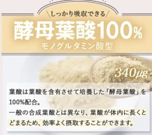 葉酸は葉酸を保有させて培養した酵母葉酸を100%配合
