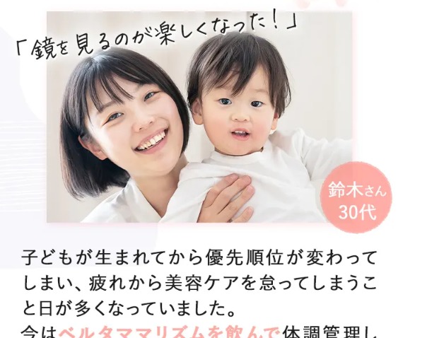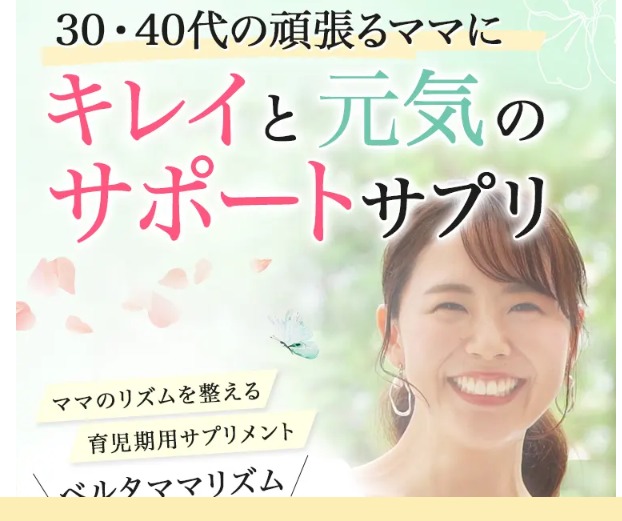[char no=”5″ char=”なつみ”]ベルタママリズムは、妊娠中や、育児中のママの疲れ、ストレスを癒してくれると評判のサプリです😀