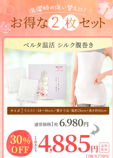 ベルタ温活シルク腹巻の公式販売店なら1枚あたり4,885円