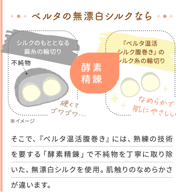 ベルタ温活シルク腹巻は、シルク素材を使用し、やさしくお腹周りを包み込む温活サポートアイテムです。