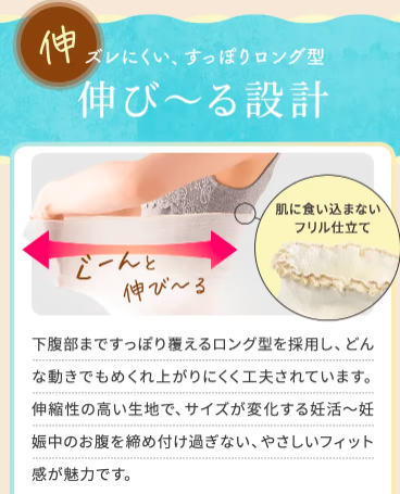 母が贈ってくれました締め付け感がなくて、ふんわりお腹をガードしてくれるところが気に入ってます