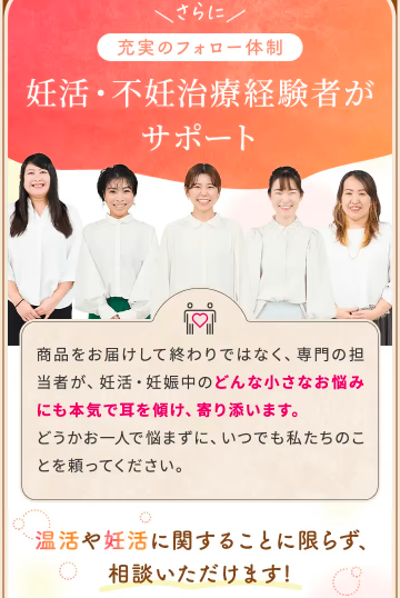 妊活アドバイザーのサポート付きの万全な体制で利用できますので、