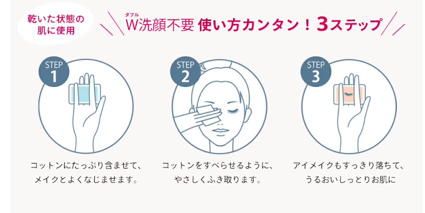 メイク落とし、洗顔、潤いケアの3つの機能が