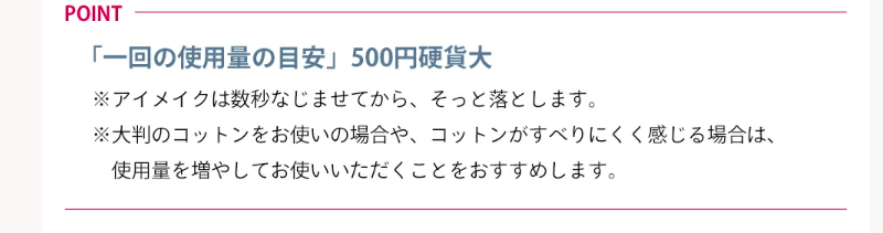 • コットンはケチらず“ひたひた”に。摩擦を減らすと心地よさが向上します。