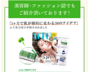 美力青汁は、雑誌「with 2019年7月号」の特集 「1ヶ月で肌が劇的に変わる30のアイデア」で紹介された注目の青汁です。