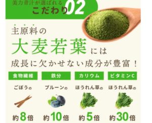 - 3.7 美力青汁は、主原料の大麦若葉には成長に欠かせない成分が豊富