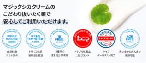 トラブル跡クリームはドイツのダーマテストを完了しており、敏感肌の方にも心配なく使用いただけます