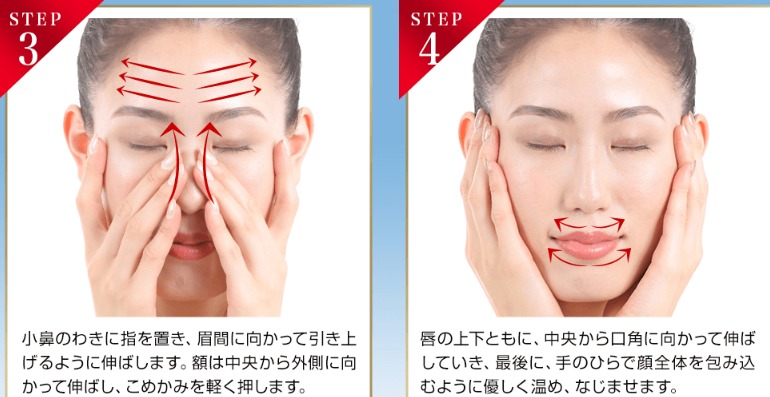 - バランシングナノセラムを手のひらで温めてからハンドプレス(顔全体→乾きやすい部位は重ねづけ)