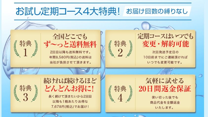 | 2か月目 | 30日前後に 17%OFFの1箱7678円(税込) |