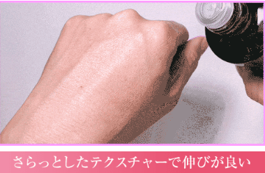 - みずみずしい使用感:ジェル〜とろみローションの中間のテクスチャで、ベタつきにくく重ねやすい