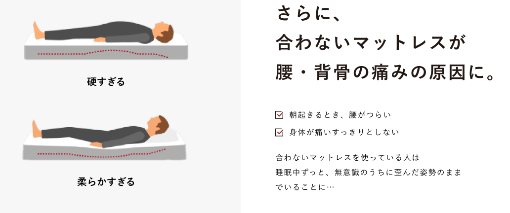 さらに合わないマットレスが腰、背骨の痛みの原因に