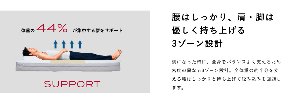 腰はしっかり肩、脚は優しく持ち上げる3ゾーン設計
