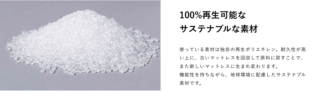 耐久性が高いうえに、古いマットレスを回収して原料に回すことで、古いマットレスから回収して、