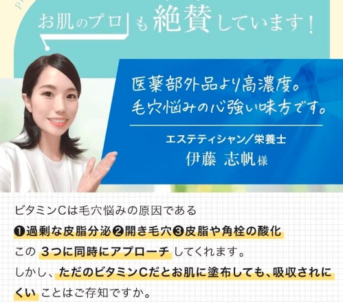 | 有効成分 | ビタミンC誘導体 国が認めた成分配合医の薬部外品 |