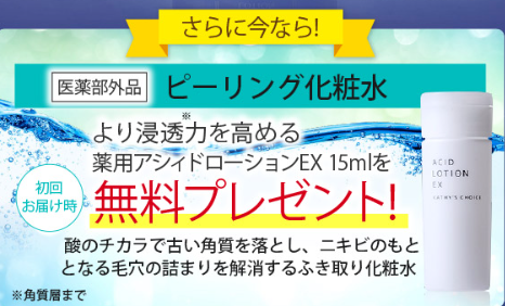 | 特典 | 送料無料 初回限定ニキビ+肌荒れ予防肌の生まれ変わりをサポート!ふき取り化粧水薬用アシィドローションEX15mlを無料でプレゼント |