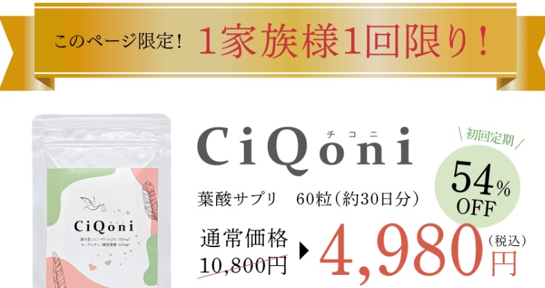 | 商品名 | 葉酸サプリCiQoni(チコニ) |