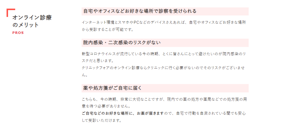 - プライバシーに配慮:来院不要のため、人に知られず相談・利用できる。