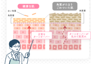 | 角質がたまりごわついた肌はターンオーバーが乱れて肌荒れ💦 |