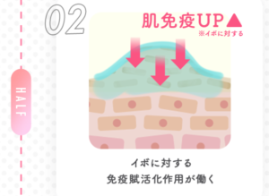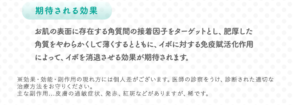 | 効果 | 肌の保湿 | イボを消退させる 効果が期待できる |