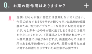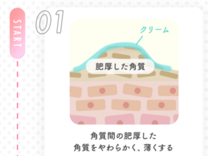 [char no=”5″ char=”なつみ”]お肌の表面に存在する角質間の接着因子をターゲットにして肥厚した角質を柔らかく薄くさせることでイボに対する