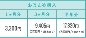 | 3ヶ月分 | 9405円(税込) (3135円/1個当たり) |