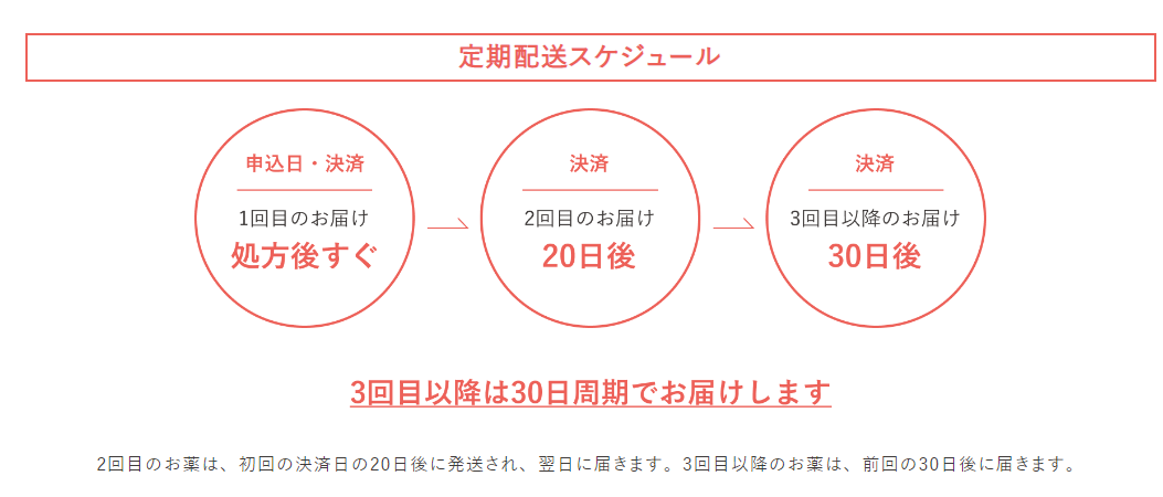 | 決済 3回目以降のお届け 30日後 3回目以降は28日周期でお届けします 2回目のお薬は |