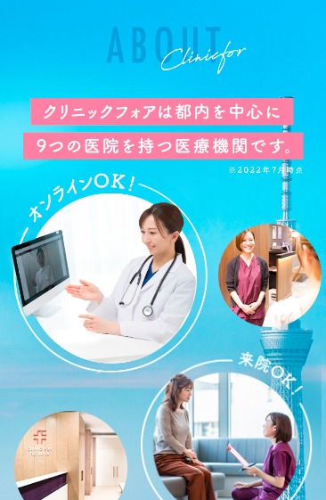 クリニックフォアは、都内に9つの医院を持つ医療機関です