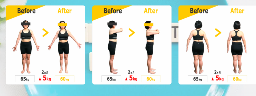たった2か月間で見た目にはっきりとわかるプロポーション改善の効果が図れました。