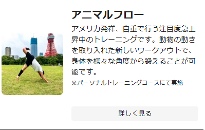 | トレーニングプログラム | パーソナルトレーニング マタニティトレーニング ストレッチ整体 ダイエットコース アニマルフロー 青空ストレッチ |