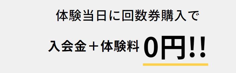 | キャンペーン | 体験当日に回数券購入で 入会金+体験料0円 |