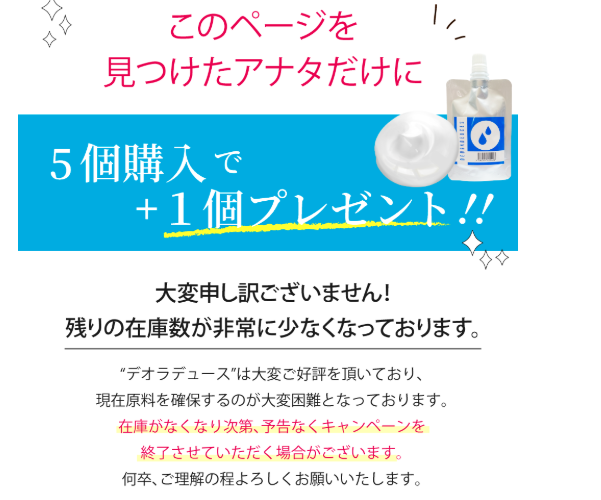 DEORADEUCES(デオラデュース)の公式通販なら5個まとめ買いで1個無料プレゼントキャンペーン中ですので、